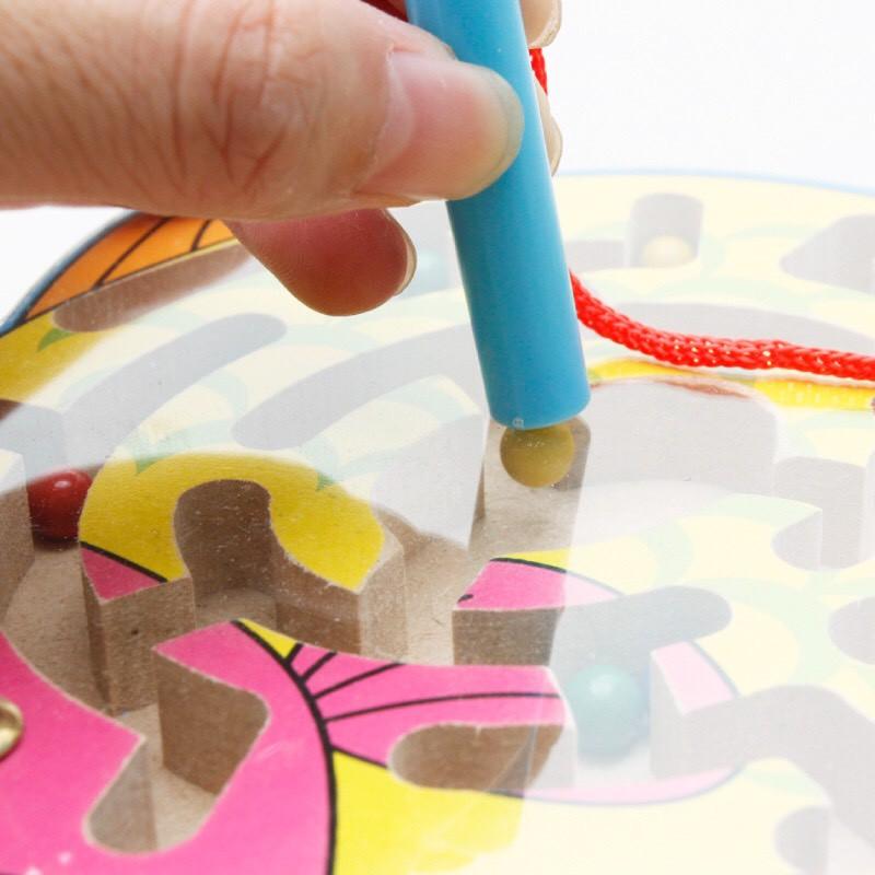 Đồ Chơi Trí Tuệ - Trò Chơi Mê Cung Gỗ Nam Châm Lăn Bi Cho Bé