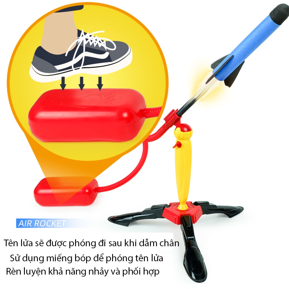 Đồ chơi trẻ em Bắn tên lửa, chân dẫm, phóng tên lửa mềm mô phỏng đồ chơi thùng pháo bay - Đồ chơi bộ đạp phóng tên lửa cho bé. +vật liệu : nhựa , xốp + cân nặng : 0,5kg +Bao gồm bàn dẫm và tên lửa ( số lượng theo phân loại sản phẩm ) Có đồ chơi phóng tên lửa giờ đây con bạn có thể : chơi ở bất cứ đâu ngoài trời hoặc trong nhà để giải trí và rèn luyện sức khỏe. Đó chắc hẳn là một sự lựa chọn tuyệt vời mang lại tiếng cười sảng khoái cho các bé! 【LẮP RÁP DỄ DÀNG & CHẤT LƯỢNG CAO】 Chỉ cần bốn bước để hoàn thành việc lắp ráp. Được làm bằng nhựa cao cấp, bền và ổn định. Trình khởi chạy áp dụng góc điều chỉnh và thiết kế lưu trữ xoay. Giá đỡ bốn chân giúp bệ phóng ổn định hơn. 【ĐỒ CHƠI TRẺ EM】: Chúng tôi mạnh mẽ đứng đằng sau mỗi mặt hàng mà nó thiết kế và bán. Mỗi sản phẩm chúng tôi bán ra đều đã trải qua quá trình kiểm tra và chứng nhận nghiêm ngặt trước khi hạ cánh đến cửa nhà bạn. Đảm bảo sự an toàn hoàn toàn của đồ chơi của chúng tôi. 💥 SDT/Z4l0 : 0987523669