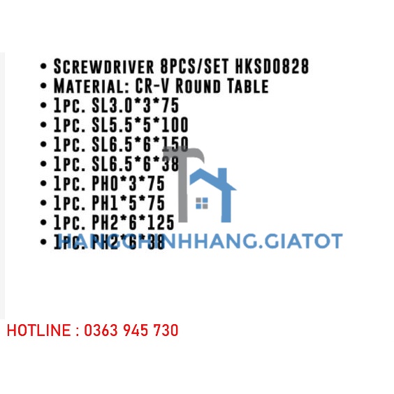 Thương Hiệu : INGCO Xuất Xứ : Trung Quốc Bảo Hành : 6 Tháng Cam Kết : Bảo Hành 100% không phát sinh thêm chi phí $$ Lưu Ý : Shop có cung cấp thêm phụ kiện dụng cụ điện cầm tay để phục vụ cho nhu cầu sử dụng của quý khách. Thông tin sản phẩm: "Chất liệu: CR-V, Đuôi tròn, Size của 8 tua vít gồm: 1Cái SL3.0*3*75 - 1Cái SL5.5*5*100 1Cái SL6.5*6*150 - 1Cái SL6.5*6*38 1Cái PH0*3*75 - 1Cái PH1*5*75 1Cái PH2*6*125 - 1Cái PH2*6*38- 20/T"