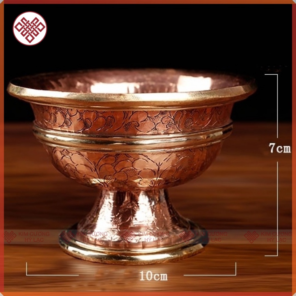 THEO DÕI SHOP NGAY ĐỂ NHẬN MÃ GIẢM GIÁ Chén đồng cúng dường nước Nepal Size bé: miệng chén 8cm, cao 5,5cm Size lớn: miệng chén 10.5cm. cao 7,5cm Chất liệu: đồng Xuất xứ: Thủ công Nepal Nước biểu trưng cho trí tuệ. Cúng dường nước là phương pháp cúng dường cực kỳ thù
