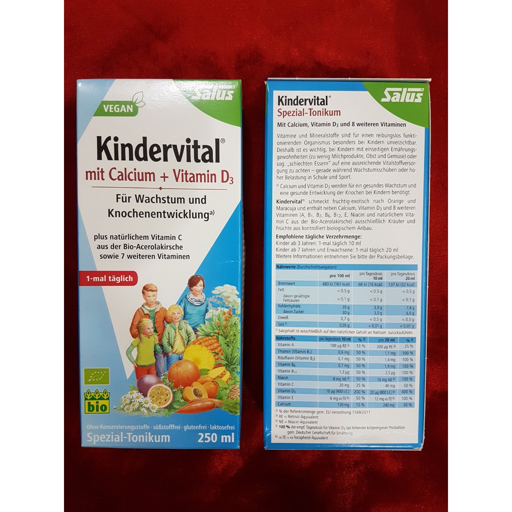 Xuất xứ: Đức Quy cách: 250ml Sản phẩm dùng được cho trẻ từ 3 tuổi. Bổ sung vitamin C tự nhiên của quả cherry acerola hữu cơ. Cùng với 7 loại vitamin khác và Canxi. Giúp trẻ phát triển thể chất và tăng sức đề kháng. Trẻ em từ 3 tuổi: 10 ml mỗi ngày một lần Trẻ em t