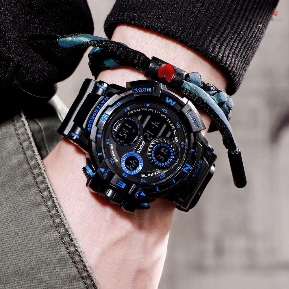 Đồng hồ đeo tay điện tử chống thấm nước màn hình lớn có báo thức và chuông báo cho nam