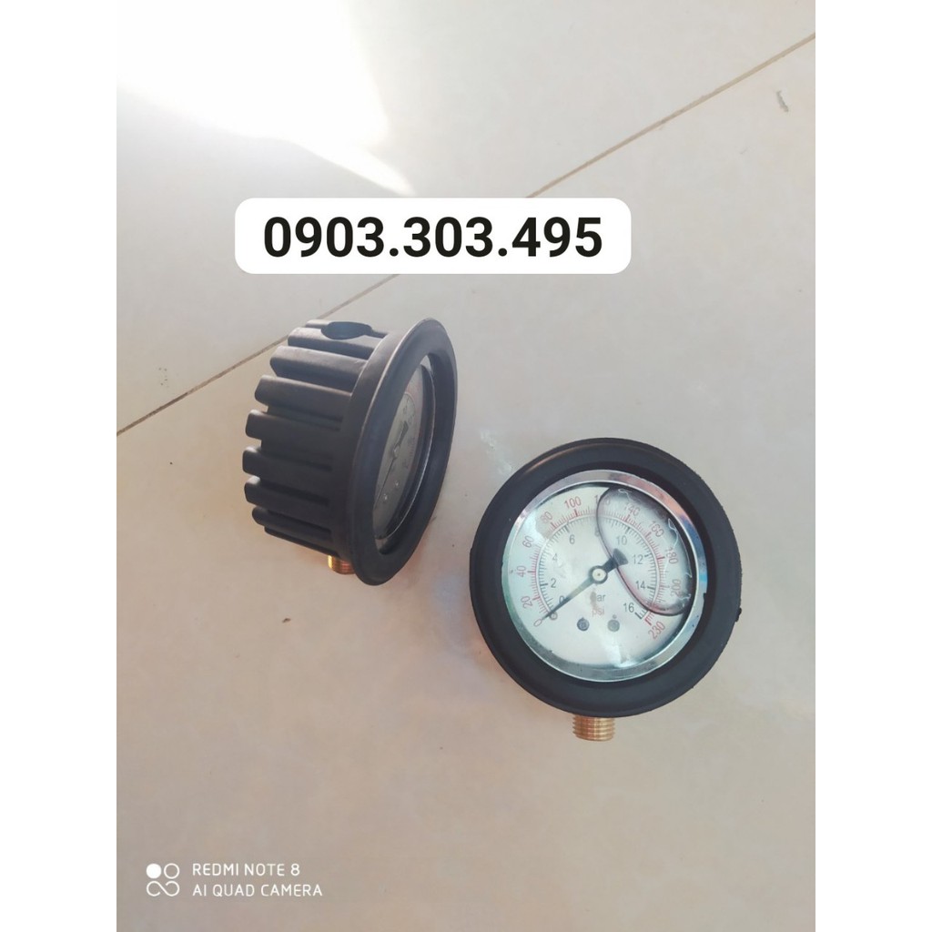 Chuẩn loại 1 hàng chính hãng Công Nghệ: Đài Loan Nguyên Liệu: vỏ INOX , ngaoif bọc su chống va đập + ruột đồng Đặc Điểm: kiểu kết nối chân đứng. Quy Cách Ren: chân ren của đồng hồ có răng ngoài, có kích thước 13 mm (1/4"). Quy Cách Khác: mặt đồng hồ có kích thước 63