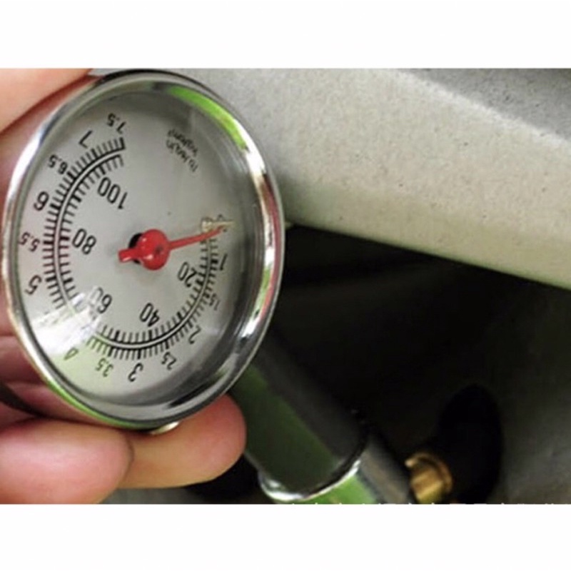 Đồng hồ đo áp suất lốp ô tô Áp suất lốp cao dẫn tới nổ lốp, rất nhiều vụ tại nạn thảm khốc sảy ra trên đường cao tốc, nguyên nhân do áp suất lốp quá cao dẫn tới nổ lốp với tốc độ 90-120km, thật quá nguy hiểm, có cách giúp chúng ta kiểm soát áp suất lốp trước mọi hành trình để chuyến đi trở nên an toàn hơn. Chúng tôi xin giới thiệu đồng hồ đo áp xuất lốp cho ô tô , sản phẩm được nghiên cứu và được sử dụng tại nhiều nước trên thế giới. Lốp xe là bộ phận quan trọng trên mỗi chiếc xe, nó trực tiếp tiếp xúc với bề mặt đường giữ thăng bằng giúp chiếc xe di chuyển. Nhiều hãng xe cao cấp đắt tiền cho điều đó là sự an toàn cần thiết trên mỗi chiếc xe vì thế họ đã thiết kế cảm biến áp suất lốp nếu không may lốp xe bị non hơi sẽ không thể khởi động được. Tuy nhiên ở một số hãng bình dân công nghệ đó quả là xa xỉ, vì vậy những chiếc máy đo áp suất lốp không thể thiếu, nó giúp bạn kiểm soát áp suất lốp trước mọi hành trình. TỔNG QUAN VỀ THIẾT KẾ. Sản phẩm được thiết kế nhỏ gọn vừa lọt lòng bàn tay, thật tuyệt vời vì nó chiếm khá ít khoảng không gian trên xe của bạn. Đồng hồ báo áp suất hiển thị 2 thông số kg/cm² và hiển thị áp suất đơn vị Ib/sq.in Đầu đo tiếp xúc trực tiếp với chân van hiển thị chính xác thông số áp suất lốp. Van xả bên cạnh mặt đồng hồ đo. Toàn bộ sản phẩm được chế tạo bằng vật liệu hợp kim bề mặt sau và thân được phủ một lớp sơn bóng chống gỉ. Mặt đồng hồ hiển thị thông số cơ sắc nét, mặt viền được ốp bằng hợp kim chắc chắn bền đẹp. THÔNG SỐ KỸ THUẬT Tên : đồng hồ đo áp suất lốp ô tô Vật liệu : hợp kim, phủ sơn bóng chống gỉ. Ứng dụng : đo áp suất lốp ô tô Trọng lượng : 130g Kích thước sản phẩm : 10x5x2.5cm Kích thước hộp : 16x12x6cm. Kích thước nhỏ gọn tiện lợi mang theo, dễ dàng sử dụng Dải hiển thị áp suất : 28-35 pounds ( psi ) + quý khách đặt hàng vui lòng ấn thoe dõi shop để nhận mãi giảm giá của shop nhé + khách hàng vui lòng áp mã giảm giá để đặt hàng + quý khách nhận hàng vui lòng đánh giá 5* call : 0372315058 tư vấn 24/7