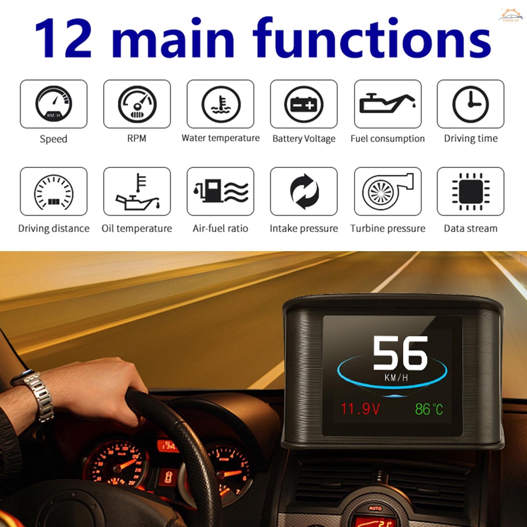 Tính năng ' 12 Chức năng chính - Đồng hồ kỹ thuật số thông minh này có nhiều chức năng , bao gồm tốc độ , RPM , nhiệt độ nước , điện áp ắc quy , tiêu thụ nhiên liệu , thời gian lái xe , khoảng cách lái xe , nhiệt độ dầu , tỷ lệ không khí-nữ liệu, áp suất nạp , áp suấ