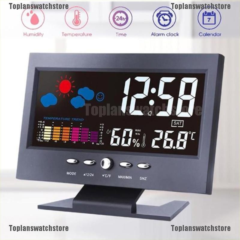 Đồng Hồ Báo Thức Điện Tử Màn Hình Màu LCD Hiển Thị Thời Tiết