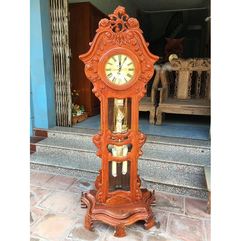 Đồng hồ cây gỗ hương đá mẫu hoa lá tây cao 1m8