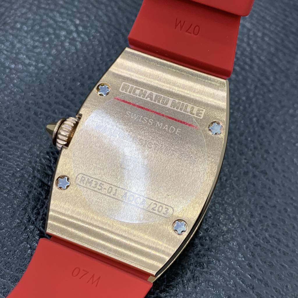 Đồng Hồ Nữ RM Mặt Đính Đá, Pin Giả Cơ Lộ Máy Nhật 28mm, Chống Nước 5ATM