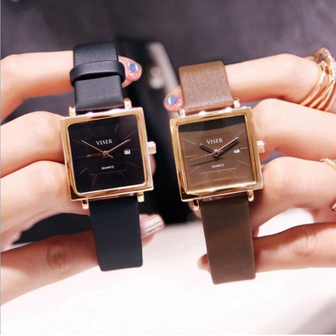 Đồng Hồ Nữ Viser Dây Da Mặt Vuông Sang Trọng Đẳng Cấp