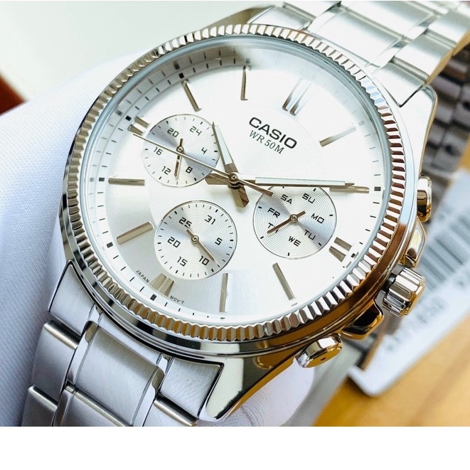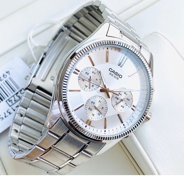 Đồng hồ nam 6 kim dây thép chính hãng Casio MTP 1375D-7AV mặt trắng chống nước size 42mm Bảo hành 1 năm Hyma watch