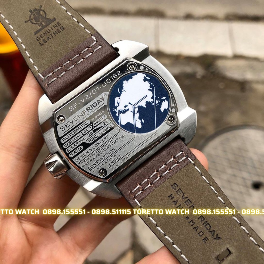 Điểm thu hút nhất của đồng hồ SevenFriday đó chính là phong cách thiết kế, SevenFriday đã tạo “sự điên rồ” trong thiết kế của mình để tạo nên sự mới lạ cho người dùng. Đây cũng chính là sự khác biệt để SevenFriday tạo nên tên tuổi cho mình trên toàn thế giới (mặc dù mới ra đời vào năm 2012). Nếu quan sát kỹ về phần mặt đồng hồ: Chắc chắn mọi nhiều người sẽ liên tưởng đến những chi tiết và kiểu dáng của chiếc vô tuyến cổ phổ biến vào những năm 70. Nhiều người sẽ thấy sự khó lạ khi xem giờ, nhưng thực sự rất dễ đọc khi vòng Animation chỉ giờ và phút hiện nổi bật trên mặt số. Đồng hồ còn trang bị kim phút như cánh tay nối dài từ phần động cơ đồng hồ. Sự đối lập màu sắc của kim giờ được hiện thị dễ dàng cho người xem mặc dù đôi khi bị che bởi vòng tròn lớn trên than kim phút. Điều đáng ngạc nhiên là thiết kế kim phút được mô phỏng lại trên logo thương hiệu và đây là đặc điểm riêng biệt của SevenFriday trong tương lai. Những chiếc đĩa nằm ở vị trí 9 giờ và vị trí 5 giờ lần lượt chỉ giờ GMT (24giờ) và chỉ giây. Đây không phải ý tưởng mới nhưng chiếc đĩa quay đã tạo nên hiệu ứng bắt mắt khi nhìn vào mặt đồng hồ. Điểm đáng lưu ý cuối cùng đó chính là bánh răng cân bằng khiến mặt đồng hồ luôn có điểm thu hút. Kích thước chuẩn của tất cả mẫu đồng hồ SevenFriday là 47mm x 47.6mm, tuy nhiên kích thước thật của đồng hồ chắc chắn sẽ nhỏ hơn nếu chúng ta bỏ đi phần “tai” trên vỏ đồng hồ. Với dòng đồng hồ P1,P2 sử dụng dây đeo bằng da bê, còn dòng đồng hồ P3 có phần dây đeo bằng da đục lỗ khác lạ. Ngoài ra, đồng hồ SevenFriday còn có khả năng chịu áp lực nước lên đến 30m. Thông số kĩ thuật : - Kiểu Dáng : Khoẻ khoắn, thể thao - Máy : Miyota 82S5 - Chức Năng : Hour, Minute, Day - Chất liệu Vỏ : Thép không gỉ đánh bóng - Hình Dáng mặt : Vuông - Đường kính mặt : 47×47.6 mm - Gờ lắp mặt kính : Thép không gỉ - Kim Đồng Hồ : Thép không gỉ - Chất Liệu Dây : Da bê cao cấp - Đường Kính Dây : 28 mm, dài 18cm - Chống Nước :3 ATM (30 m) - Mặt Kính : Kính cứng chống phản xạ ánh sáng - Bảo hành máy : 2 năm Liên hệ để được tư vấn tốt hơn : Zalo : 0963328426 Facebook 1 : https://www.facebook.com/TopSevenFridayVietNam Facebook 1 : https://www.facebook.com/Toretto.store.hn
