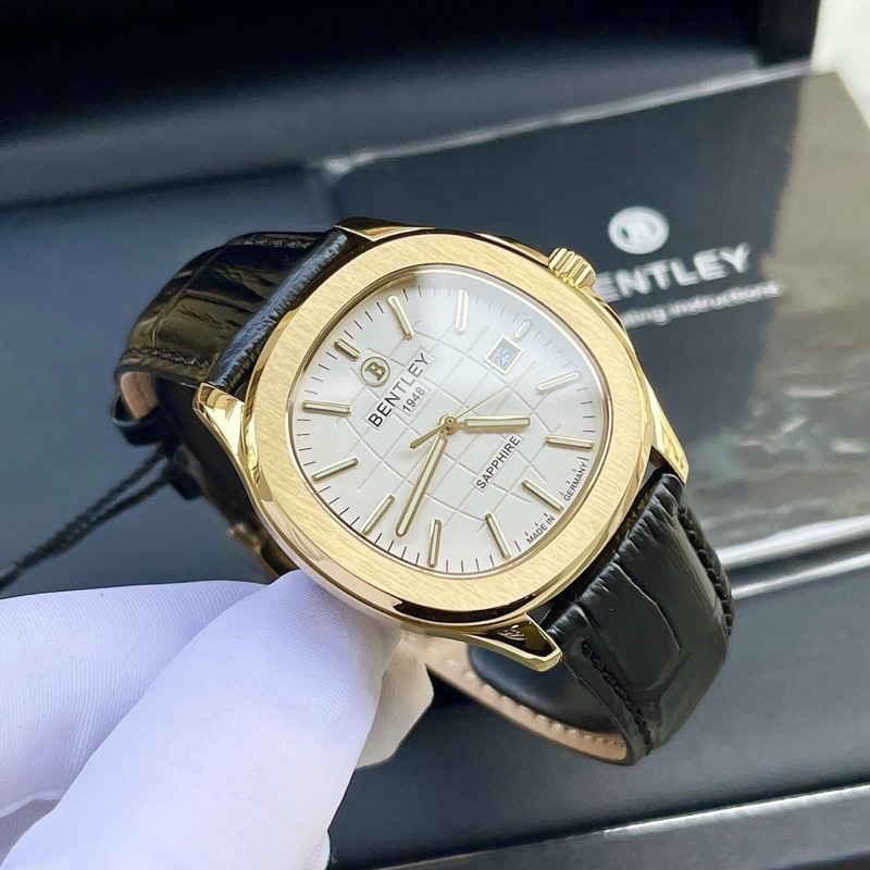 Đồng hồ Nam Bentley Nautilus BL1869 - 10 mặt trắng vỏ vàng dây da đen