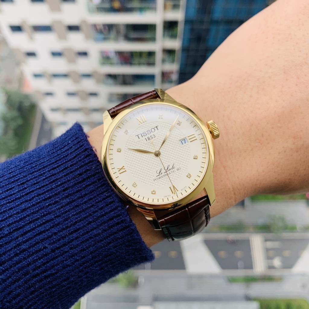 Đồng hồ nam chính hãng #Tissot Le Locle Diamond #T006.407.36.266.00 - Máy cơ tự động Powermatic 80 - Kính Sapphire Le Locle - dòng sản phẩm bán chạy nhất của thương hiệu Tissot Nay được nâng cấp mạnh mẽ ở diện mạo với việc đính 8 viên kim cương ở cọc số càng làm mẫu đồng hồ này trở nên sang trọng và đẳng cấp hơn bao giờ hết Thông số: - Đường kính mặt 39.3mm rất dễ đeo - Dây da kích thước rộng 20mm - Máy cơ tự động Powermatic 80 trữ cót tối đa 80h - Kính Sapphire chống xước tốt - Thân thép ko rỉ, vỏ mạ PVD Gold sang trọng - Dây da nâu dập vân cá sấu, đi kèm khóa bướm tiện dụng - Đáy lộ cơ đẹp mắt - Chống nước 30m - Store đang b.án hơn 24tr 🔥🔥🔥 Giá săn seo chỉ : 16.690k 💥Chế độ bảo hành: 💯 Hàng chính hãng mới 100%, Full box tag, sổ hãng - Bảo hành 2 năm tại shop, xác nhận mua hàng làm căn cứ bảo hành, đổi trả trong vòng 15 ngày nếu lỗi hoặc không đúng mô tả. Hoàn 100% tiền