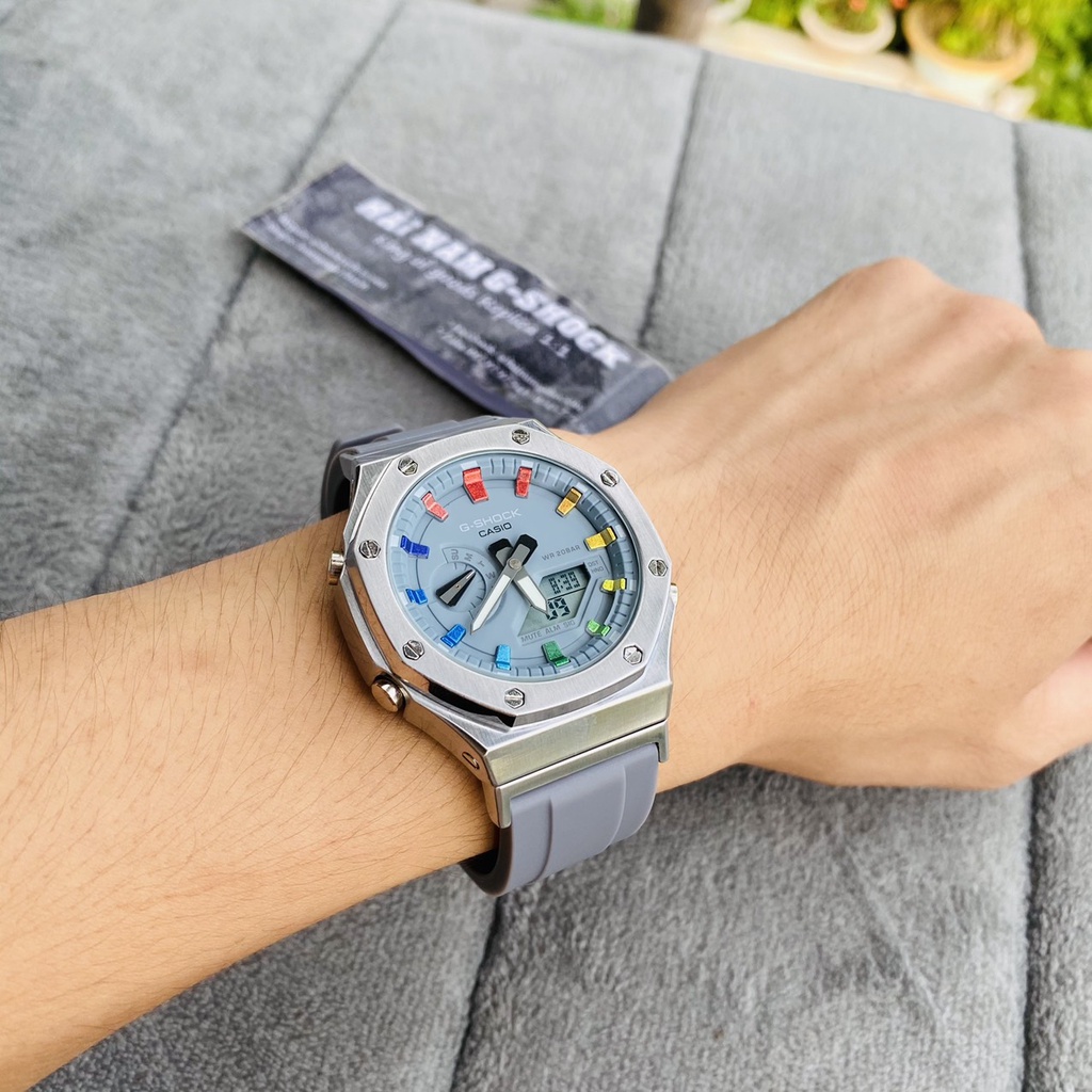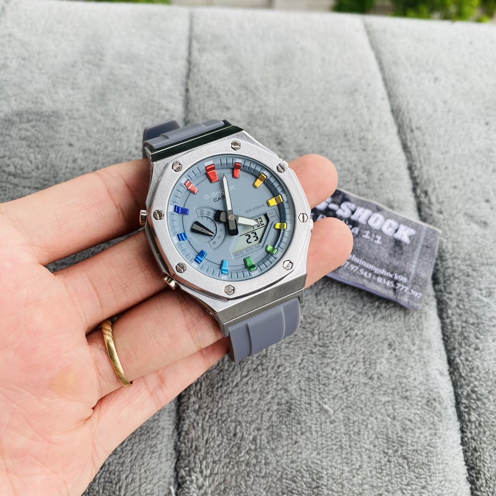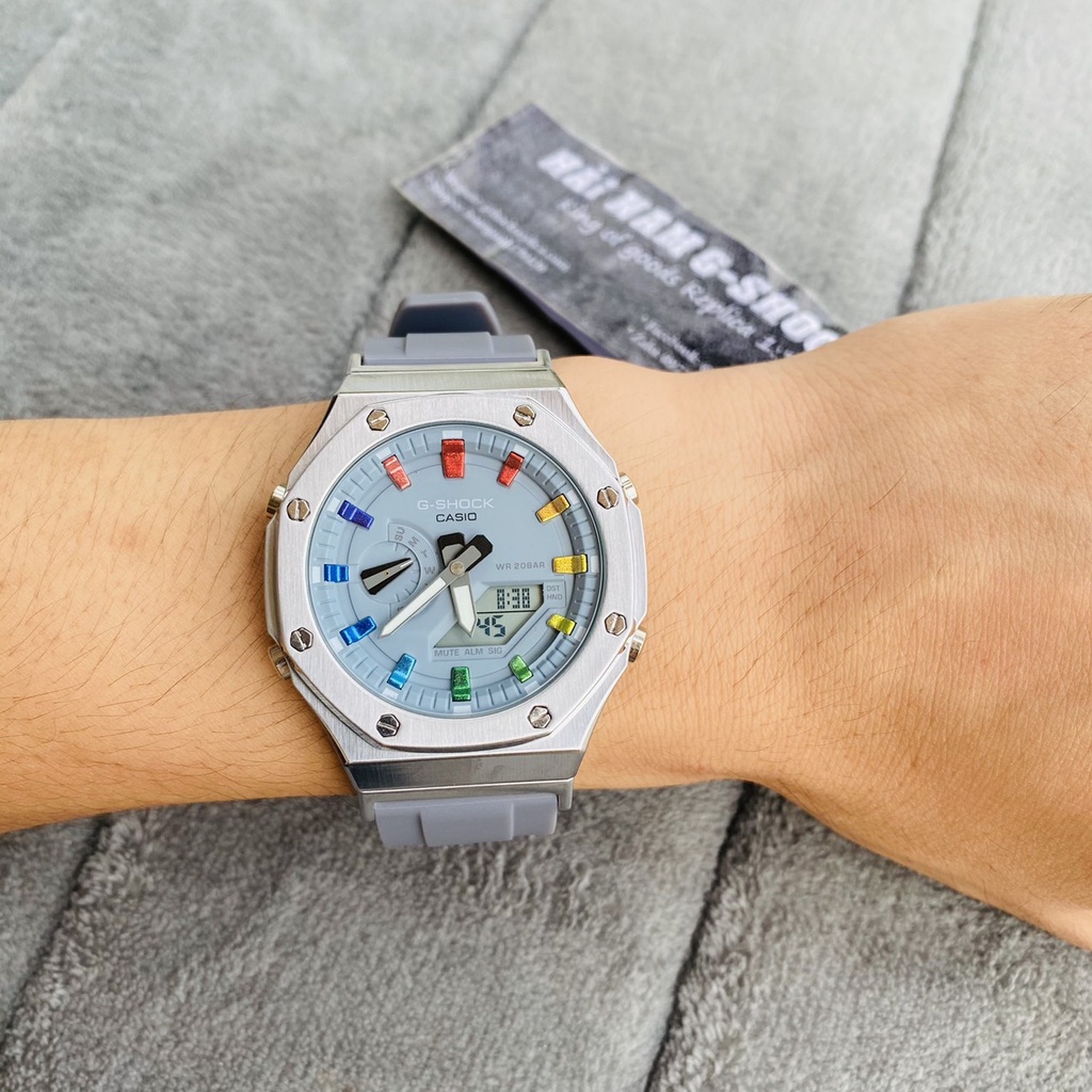THÔNG TIN SẢN PHẨM: - Tên sản phẩm: GA-2100-1A Custom Silver Gray - Đơn vị cung cấp: Hải Nam G-Shock | gshockreplica.com - Kích thước mặt: 44mm. - Chất liệu vỏ: Thép không ghỉ 316. - Chất liệu dây đeo: Nhựa cao cấp. - Chức năng: Full chức năng như hàng chính hãng. - Kim nhỏ chỉ được THỨ chính xác. - Độ sao chép 98%. - Đèn led: Auto Light. - Độ chống nước: Tắm,rửa tay,đi mưa, bơi lội thoải mái. ---------------------------- THÔNG TIN LIÊN HỆ: - Wepsite: gshockreplica.com - Fanpage: @hainamgshock98 - Youtube: Đồng Hồ Hải Nam - Zalo: ⓿❸❹❺.❼❼❼.❸❾❼ ( Đồng Hồ Hải Nam ) 24/7 ---------------------------- BẢO HÀNH: - Bảo hành sản phẩm 2 năm đối với lỗi nhà sản xuất. - Hỗ trợ thay pin,thay dầu miễn phí suốt vòng đời sản phẩm. - Đổi mới miễn phí 7 ngày đầu nhận hàng nếu phát sinh lỗi nsx. ----------------------------