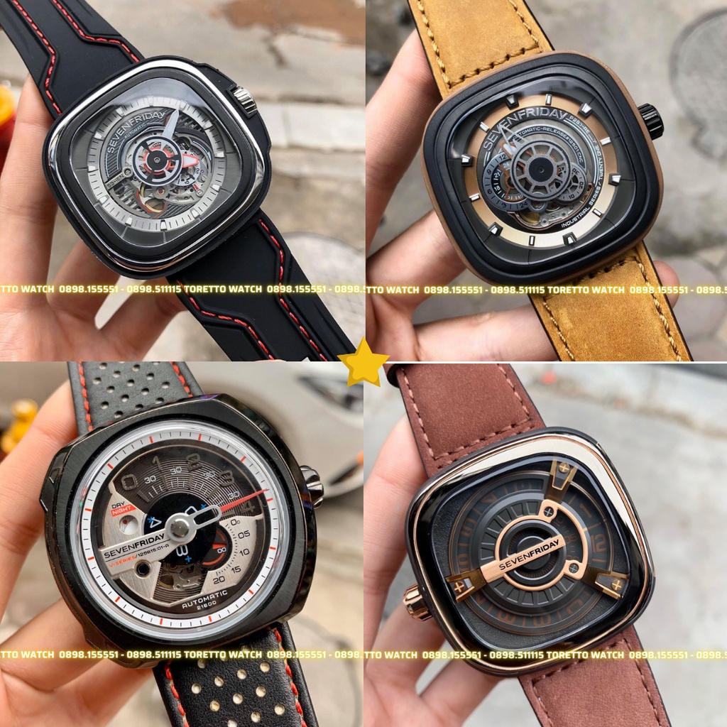 Điểm thu hút nhất của đồng hồ SevenFriday đó chính là phong cách thiết kế, SevenFriday đã tạo “sự điên rồ” trong thiết kế của mình để tạo nên sự mới lạ cho người dùng. Đây cũng chính là sự khác biệt để SevenFriday tạo nên tên tuổi cho mình trên toàn thế giới (mặc dù mới ra đời vào năm 2012). Nếu quan sát kỹ về phần mặt đồng hồ: Chắc chắn mọi nhiều người sẽ liên tưởng đến những chi tiết và kiểu dáng của chiếc vô tuyến cổ phổ biến vào những năm 70. Nhiều người sẽ thấy sự khó lạ khi xem giờ, nhưng thực sự rất dễ đọc khi vòng Animation chỉ giờ và phút hiện nổi bật trên mặt số. Đồng hồ còn trang bị kim phút như cánh tay nối dài từ phần động cơ đồng hồ. Sự đối lập màu sắc của kim giờ được hiện thị dễ dàng cho người xem mặc dù đôi khi bị che bởi vòng tròn lớn trên than kim phút. Điều đáng ngạc nhiên là thiết kế kim phút được mô phỏng lại trên logo thương hiệu và đây là đặc điểm riêng biệt của SevenFriday trong tương lai. Những chiếc đĩa nằm ở vị trí 9 giờ và vị trí 5 giờ lần lượt chỉ giờ GMT (24giờ) và chỉ giây. Đây không phải ý tưởng mới nhưng chiếc đĩa quay đã tạo nên hiệu ứng bắt mắt khi nhìn vào mặt đồng hồ. Điểm đáng lưu ý cuối cùng đó chính là bánh răng cân bằng khiến mặt đồng hồ luôn có điểm thu hút. Kích thước chuẩn của tất cả mẫu đồng hồ SevenFriday là 47mm x 47.6mm, tuy nhiên kích thước thật của đồng hồ chắc chắn sẽ nhỏ hơn nếu chúng ta bỏ đi phần “tai” trên vỏ đồng hồ. Với dòng đồng hồ P1,P2 sử dụng dây đeo bằng da bê, còn dòng đồng hồ P3 có phần dây đeo bằng da đục lỗ khác lạ. Ngoài ra, đồng hồ SevenFriday còn có khả năng chịu áp lực nước lên đến 30m. Thông số kĩ thuật : - Kiểu Dáng : Khoẻ khoắn, thể thao - Máy : Miyota 82S5 - Chức Năng : Hour, Minute, Day - Chất liệu Vỏ : Thép không gỉ đánh bóng - Hình Dáng mặt : Vuông - Đường kính mặt : 47×47.6 mm - Gờ lắp mặt kính : Thép không gỉ - Kim Đồng Hồ : Thép không gỉ - Chất Liệu Dây : Da bê cao cấp - Đường Kính Dây : 28 mm, dài 18cm - Chống Nước :3 ATM (30 m) - Mặt Kính : Kính cứng chống phản xạ ánh sáng - Bảo hành máy : 2 năm Liên hệ để được tư vấn tốt hơn : Zalo : 0963328426 Facebook 1 : https://www.facebook.com/TopSevenFridayVietNam Facebook 1 : https://www.facebook.com/Toretto.store.hn