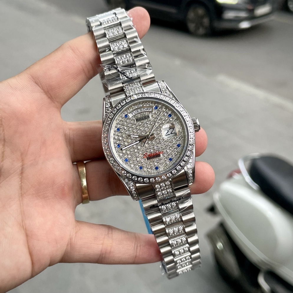 Đồng Hồ Nam RoLex DateJust Sapphire RA35 Mặt full đá Cọc giờ đính đá Máy cơ Automatic Nhật