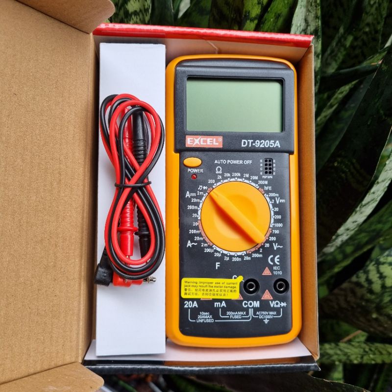 Đồng Hồ Đa Năng Excel 9205A Thông Số Kỹ Thuật Điện áp DC: 200mV-1000V ± (0,5% 1). Điện áp AC: 200mV-700V ± (0,8% 3). Dòng DC: 20mA-20A ± (0,8% 1). Dòng AC: 20mA-20A ± (1% 3). Thang điện trở: 200Ω 200MΩ ± (2,5% 3). Điện dung: 2NF-200μF. Tiếng báo bíp. Đồng hồ 9205A