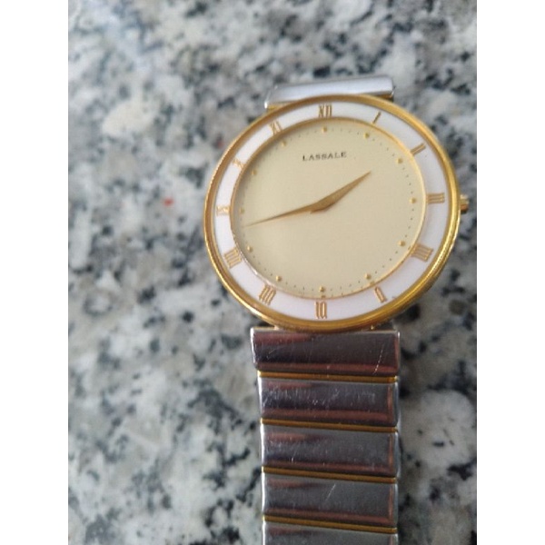 Đồng hồ nữ- hàng si tuyển Nhật Hiệu lassate. Pháp. Chính hãng. Máy nhật, seiko vàng. Size mặt 27 mm. kính sapphire chống xước. Dây size 16mm. dài 17 Mới :99%. Hàng lưu kho ở Nhật Năng lượng pin - quart Chống nước 1 ATM. Hàng si không bao chống nước. Đã làm chống nước