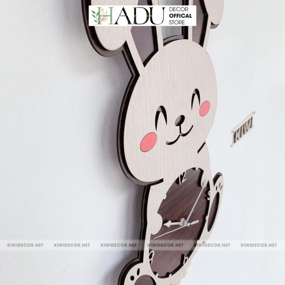 Hadu Decor - HaduDecor Đồng Hồ Treo Tường Thỏ Con Dễ Thương Trang Trí Phòng Trẻ Con, Decor Bằng Gỗ Vintage, Làm Quà Tặng Sinh Nhật Ý Nghĩa có đuôi như 1 chiếc quả lắc của đồng hồ sẽ là một vật decor trang trí phòng trẻ con dễ thương độc lạ, kích thích sự hứng thú tr