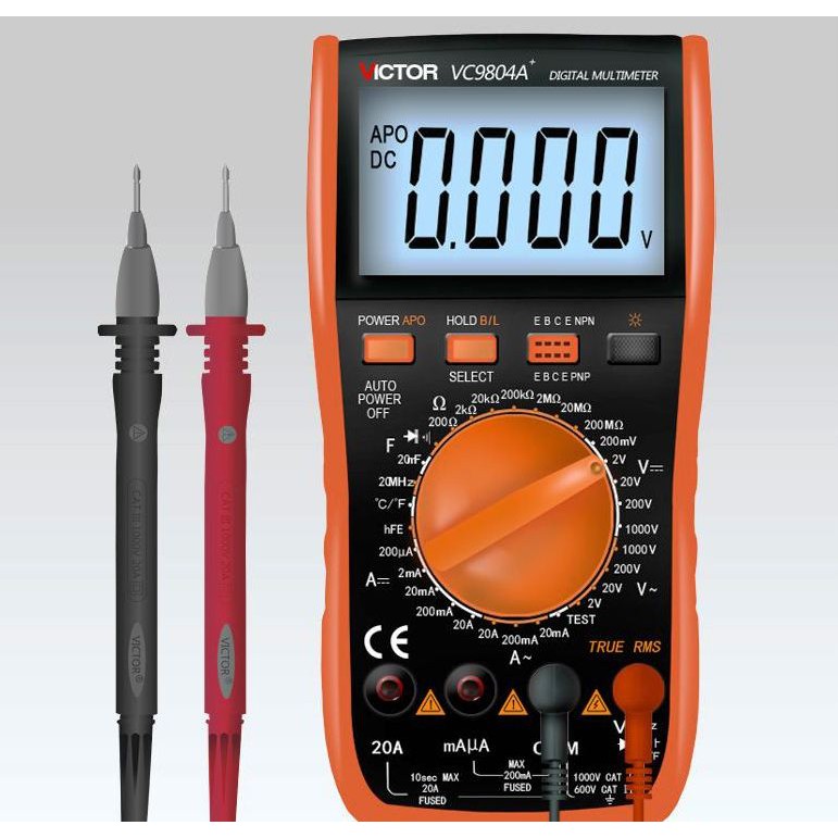 - Đồng hồ vạn năng VICTOR VC9804A+ là một chiếc đồng hồ vạn năng điện tử chính xác và hiệu suất cao. Được trang bị màn hình hiển thị to, dễ dàng đọc kết quả trong quá trình sử dụng. Thêm vào đó VICTOR VC9804A+ còn được trang bị rất nhiều tính năng tiện lợi khác để hỗ