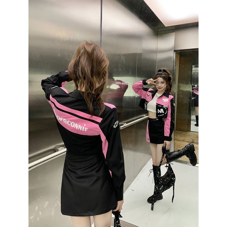 Đồng Phục Bóng Chày Mùa Thu Phong Cách Mỹ + Áo Khoác Ngắn Hip Hop Hai Mảnh Dáng Ngắn Phong Cách Tay Đua Cho Nữ