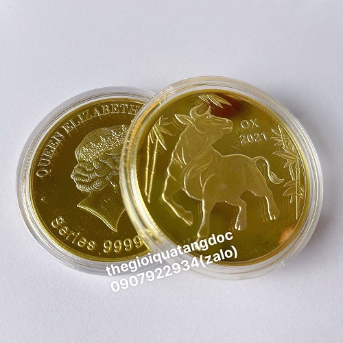Đồng Xu Úc Hình Con Trâu Mạ Vàng 2021, đồ lưu niệm, trưng bày, quà tặng may mắn