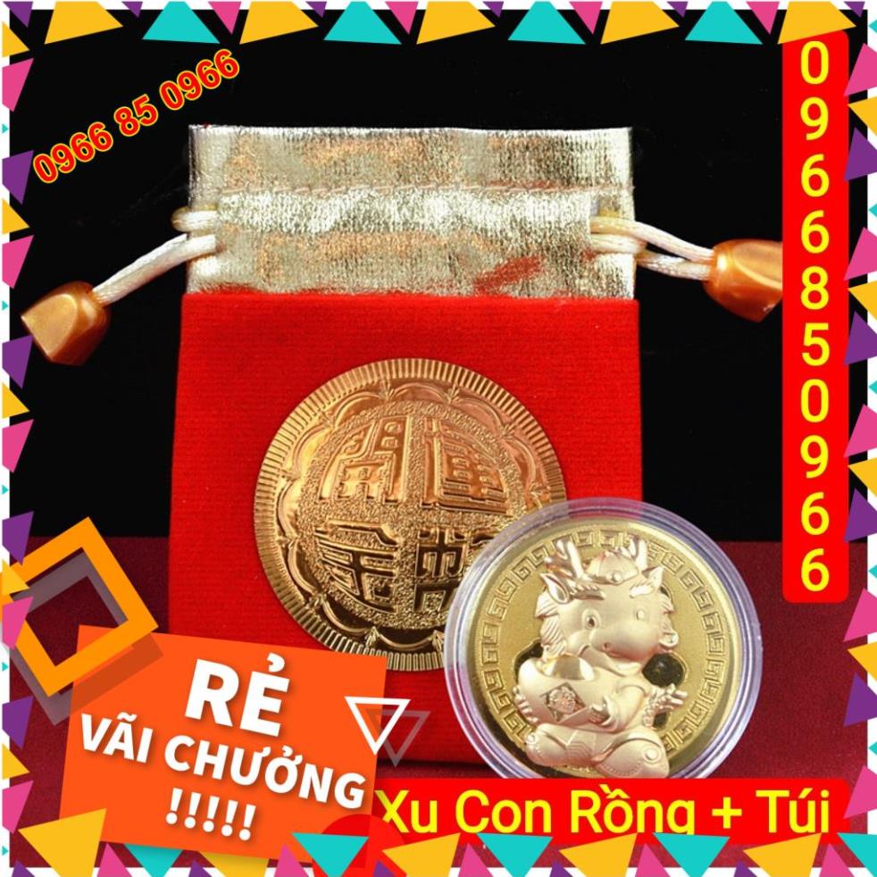 Đồng xu con rồng Giáp thìn Mẫu 2 kèm túi gấm đỏ tài lộc QMT3652