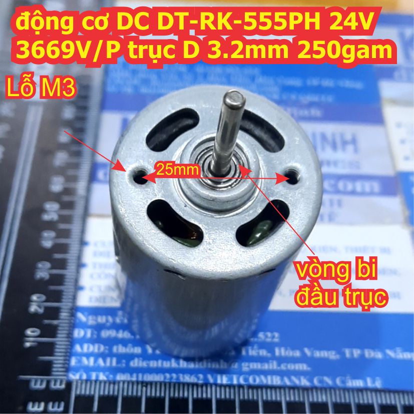 Động cơ DC 555 OT-RK-555PH 21130 24V 200mA 3669V/P, trục D 3.2mm 205g momen xoắn cao kde3084