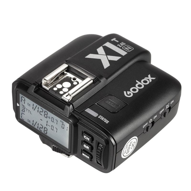 Godox X1-N TTL Wireless Flash Trigger Kit for NIKON(một phát và một nhận} Các tính năng chính: - Hỗ trợ kích hoạt đa kênh, truyềntín hiệu ổn định và phản ứng nhạy. Nó có thể được sử dụng để kích hoạt màn trập máy ảnh, đèn studio và đèn flash, X1T - N tương thích với