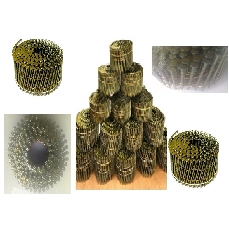 Đinh cuộn xoắn 2.3 x 55mm dùng đóng thùng gỗ ván pallet Số lượng trong 1 cuộn là 300 cây đinh. Đinh cuộn xoắn là loại đinh cuộn công nghiệp, chiều dài thân đinh 55 mm, chiều ngang thân cây đinh 2.3mm, thân cây có răng cưa đinh hình van xoắn. Các cây đinh xoắn được liê