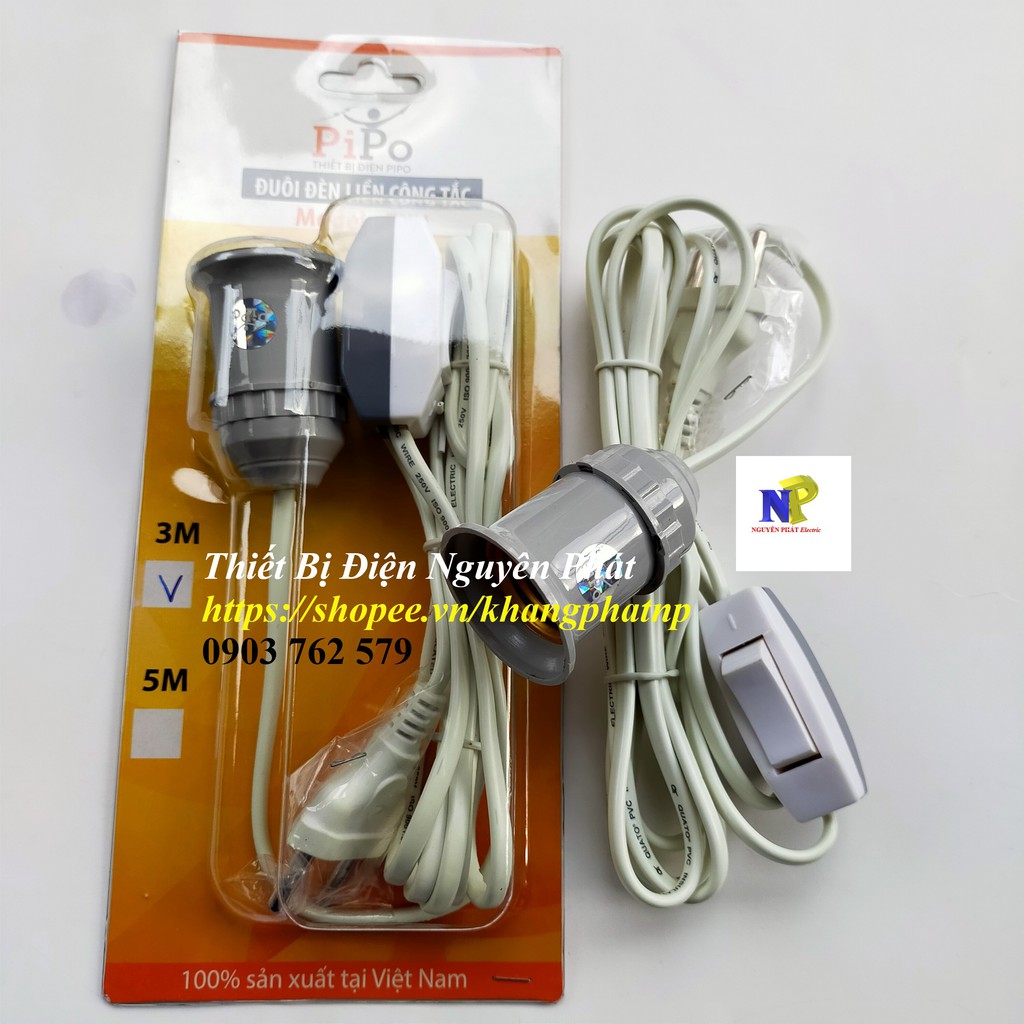 [PIPO] Đuôi Đèn Liền Dây Có Công Tắc 3m, 5m Cao Cấp Đuôi đèn xoáy treo có công tắc chất lượng vượt trội - bền bỉ cùng thời gian - sản phẩm của thiết bị điện PIPO + Đuôi xoáy + công tắc dây 3m + Đuôi xoáy + công tắc dây 5m + Công suất 1.000w + Linh Kiện đồng + Dây đủ tải + Nhựa PC chống cháy Đuôi xoáy treo E27 phù hợp với mọi bóng đèn, có sẵn công tắc ngang và phích cắm rất tiện lợi cho người bận rộn. Chỉ cần gắn thêm bóng đèn là có thể dùng ngay NOTE: Quý khách hàng có thể tham khảo thêm nhiều sản phẩm khác của SHOP Nguyên Phát tại đây: https://shopee.vn/khangphatnp Cảm ơn quý khách hàng rất nhiều. Thiết bị điện & chiếu sáng Nguyên Phát Chuyên cung cấp sỉ & lẻ các thiết bị điện và đèn chiếu cho công trình, công ty, nhà ở, nhà trọ, cửa hàng, cá nhân, trang trí quán cafe, trang trí cửa hàng... Quý Khách hàng muốn tìm những sản phẩm chất lượng và giá cả hợp lý nhất để trang trí, sửa chửa hay thay mới một thiết bị điện nào đó hãy ghé tham quan Shop chúng tôi nhé. Hotline&zalo: 0903 762 579 (Mr.An) để được tư vấn nhé. Địa chỉ Shop: 449/38/24 Hương Lộ 2, P.BTĐ, Q.Bình Tân.