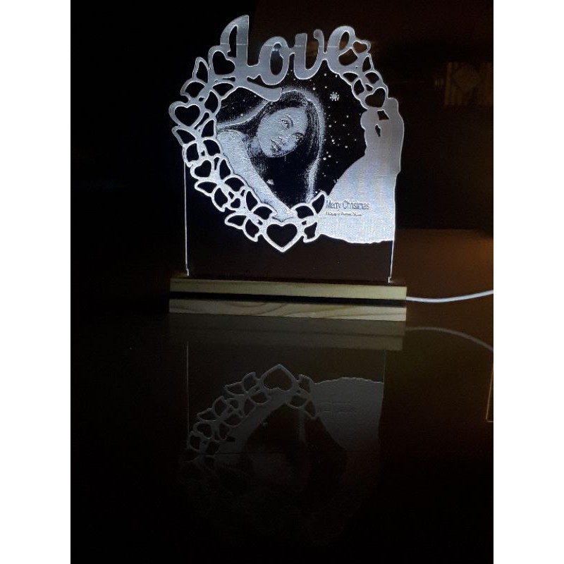 Gởi ảnh chân dung của bạn, ảnh sẻ được khắc trên chất liệu Acrylic trong suốt tạo hiệu ứng ánh sáng độc lạ, ánh sáng dể chịu cho cả ngày và đêm, làm đèn ngủ cho không gian thêm lãng mạn, ấm cúng. - Đế đèn led sx từ gỗ Thông tự nhiên - Sử dụng nguồn điện usb điện thoại