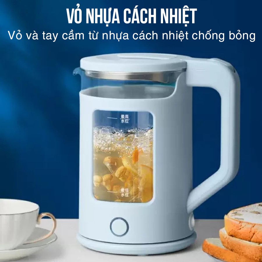 Ấm siêu tốc bình đun nước siêu tốc thủy tinh dung tích 2.3L tay cầm cách nhiệt có giữ nhiệt