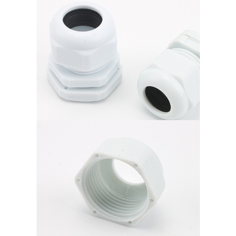 ỐC SIẾT CỐ ĐỊNH CÁP NHỰA KÍN NƯỚC PG- Màu sắc: Màu trắng Ốc siết cố định PG7 PG9 PG11 PG13.5 PG16 PG19 PG25 PG29 PG36 PG42 PG48 PG63 Kích thước cáp (mm): PG7: 3-6.5, PG9: 4-8, PG11: 5-10, PG13.5: 6-12, PG16: 10-14, PG19: 12-15, PG21: 13-18, PG25: 15-22, PG29: 18-25, PG36: 22-32, PG42: 30-38, PG48: 34-44. Lỗ khoét (mm): PG7: Ø15, PG9: Ø19, PG11: Ø22, PG13.5: Ø20, PG16: Ø22, PG19: 24, PG21: Ø27, PG25: Ø30, PG29: Ø42, PG36: Ø53, PG42: Ø60, PG48: Ø65 Ốc siết cáp giữ dây điện, khóa cáp - kẹp cáp điện chống nước Dùng kẹp giữ vỏ dây cáp điện khi đấu nối vào vỏ hộp điện, ổ cắm, thiết bị điện. Chỉ số chống nước ip68. Giữ vỏ dây (giữ cáp) không bị giằng kéo lõi ảnh hưởng đến đấu nối điện bên trong. Bóp giữ chặt vào vỏ dây cáp điện không để khe hở cho nước xâm nhập dễ dàng được.