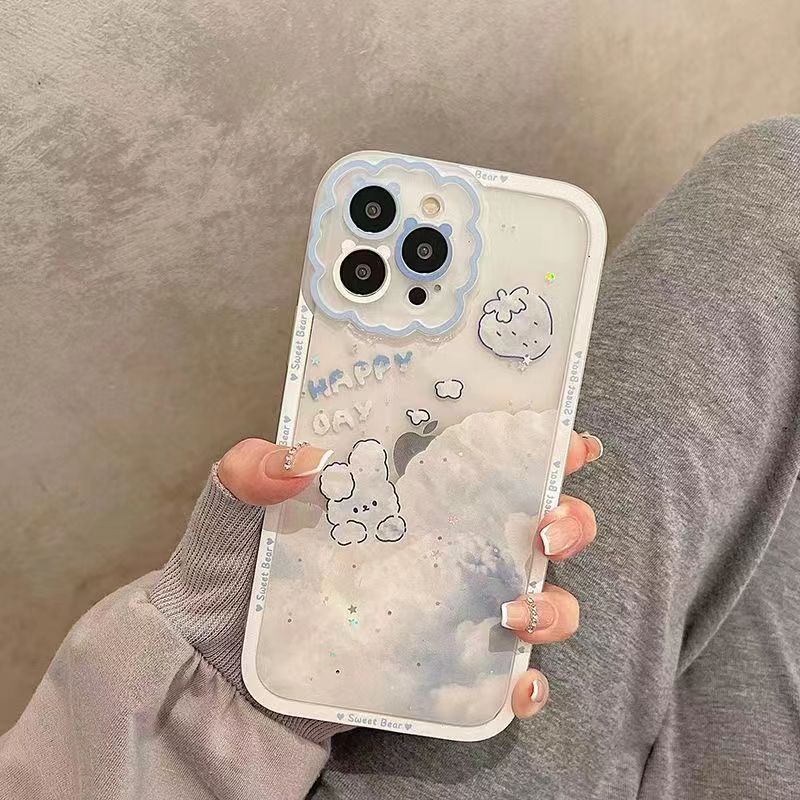 Ốp Điện Thoại Họa Tiết Hoa / Dâu Tây / Thỏ Kèm Dây Đeo Cho iPhone 14 13 12 11 Pro Max XR X XS Max 7 8 Plus