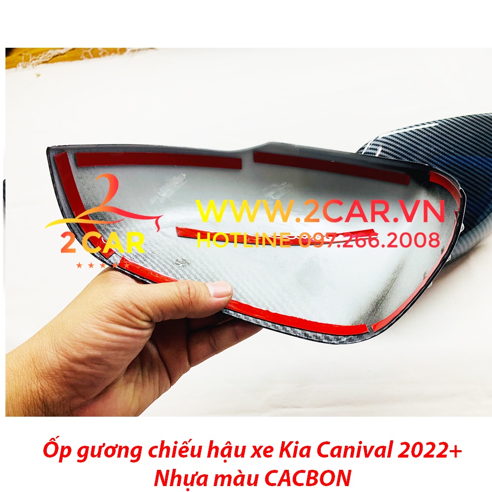 Ốp gương chiếu hậu carbon xe Kia Carnival 2021- 2022-2023-2024 nhựa ABS vân Cacbon cao cấp, giá 1 đôi