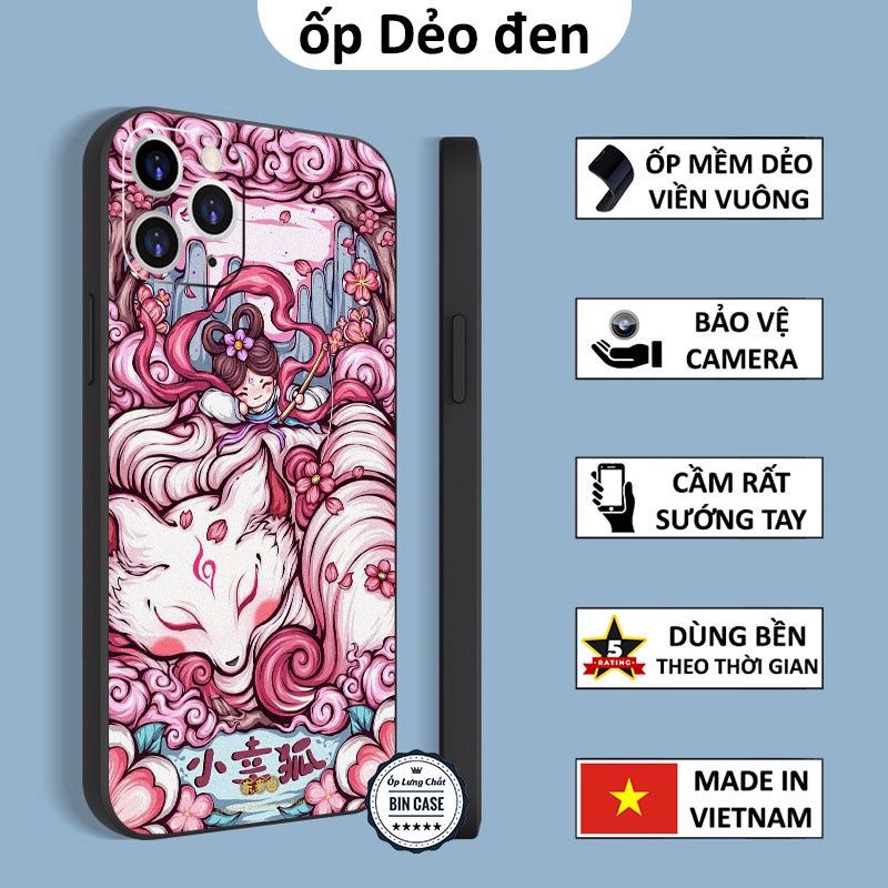 🔥Ốp Lưng iPhone Viền Vuông Hồ Ly Tiên Nữ Màu Hồng Nằm Ngủ Say iphone 14 13 12 11 Pro Max 6 7 8 Plus X Xr Xs Max DOCLA161