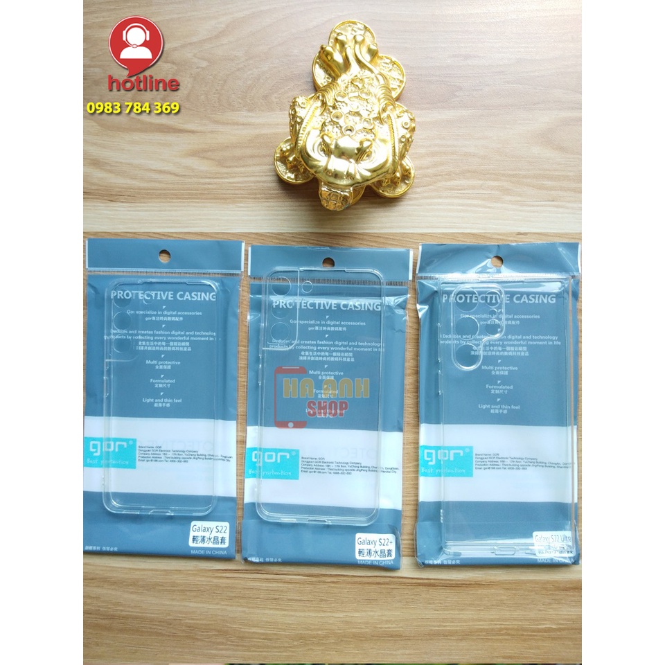 Ốp Samsung S22 5G/S22+ 5G/S22 Ultra 5G hãng Gor cao cấp, trong suốt, dẻo, mỏng, nhẹ, ôm khít máy, không ố vàng