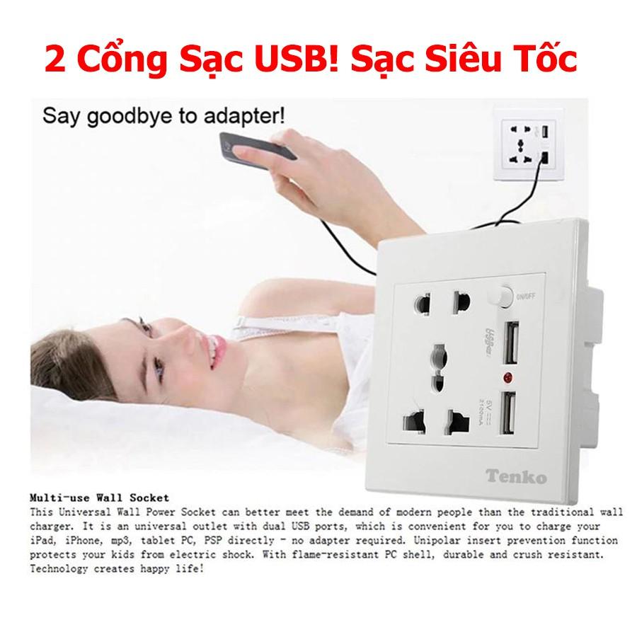 Ổ Cắm Điện Tích Hợp 2 Cổng USB Sạc Siêu Nhanh Cao Cấp Chính Hãng Tenko TK-TT-45