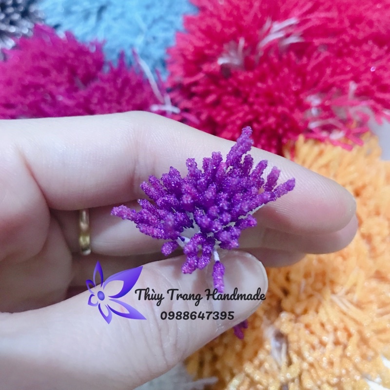 1 bó khoảng 50 sợi (mỗi sợi có 2 đầu tức đương đương 100 đầu nhuỵ). Ngoài hoa mai, hoa đào thì cũng có thể làm nhuỵ cho các loại hoa thích hợp khác. Tại shop còn có rất nhiều kiểu nhị các loại nhị lan, nhị đào, nhị lyly, nhị cúc, nhị hướng dương,....còn có cả nhị hoa sen làm sẵn nữa này. Chỉ cần ráp thêm cánh và lá là chúng ta đã có được những bông hoa xinh đẹp rồi nhe. Bạn cần tìm hiểu thêm về nguyên liệu làm hoa khác bạn có thể tìm trong shop Thùy Trang Handmade theo link sau Các bạn có thắc mắc gì cần tư vấn về sản phẩm cũng như cách làm hoa voan, hoa giấy vui lòng liên hệ với shop qua số điện thoại bên dưới để được hỗ trợ nhé. Cảm ơn các bạn đã ghé thăm shop. Chúc các bạn làm hoa thật đẹp. Thuỳ Trang Handmade (0988647395) Zalo, Facebook Chuyên cung cấp sỉ và lẻ nguyên liệu làm hoa giấy và hoa voan