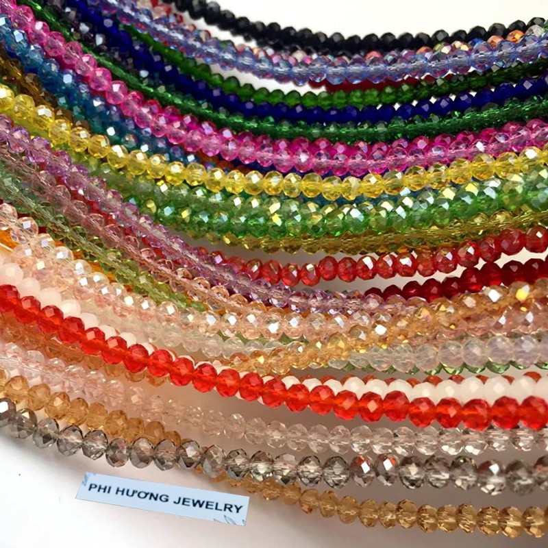 1 dây khoảng ~130 hạt pha lê bánh cam 3mm nhiều màu đính quần áo