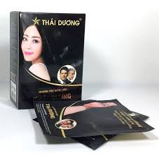 - CÔNG DỤNG : Nhuộm phần tóc bạc mang lại mái tóc chắc khỏe, đen bóng tự nhiên. - CÁCH DÙNG NHUỘM TÓC DƯỢC LIỆU THÁI DƯƠNG Bước 1: Pha bột nhuộm tóc với nước (1 gói tương ứng với 35ml nước). Khuấy đều 2-3 phút Bước 2: Chải đều Nhuộm tóc Thái Dương lên tóc, tập trun