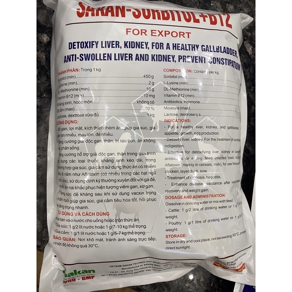1 kg SAKAN-SORBITOL+B12 Giải độc gan cho trâu bò lợn gà