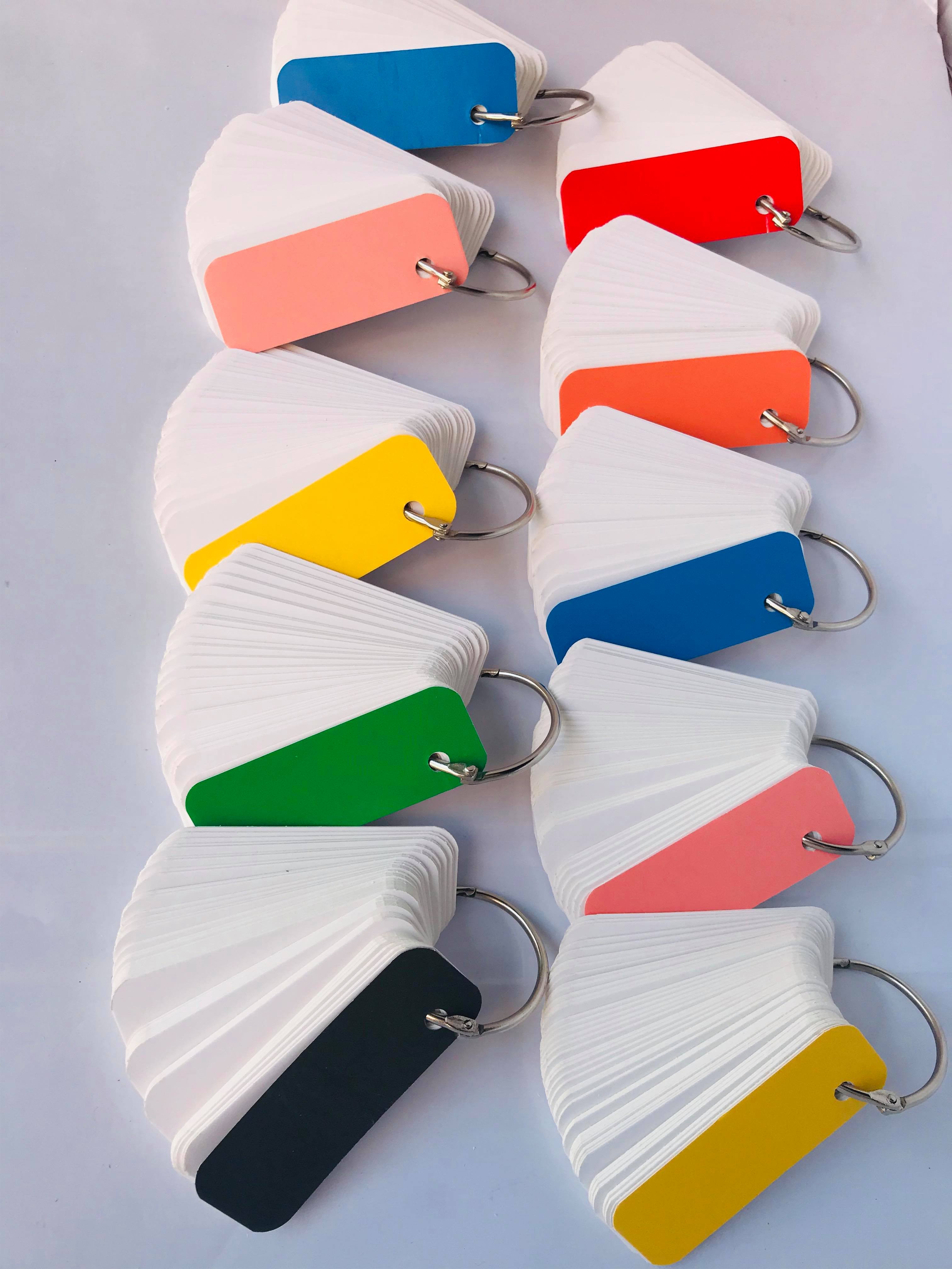 10 bộ mỗi bộ 100 thẻ đục lỗ bo tròn 4 góc rất đẹp + 1 khoen tròn 5cmLoại giấy: Ivory cao cấp một mặt nhám một mặt hơi láng. Thẻ 2 mặt dễ sử dụng, dễ tráo, có thể sử dụng 2 mặt, giấy rất dày và cứng, đ...