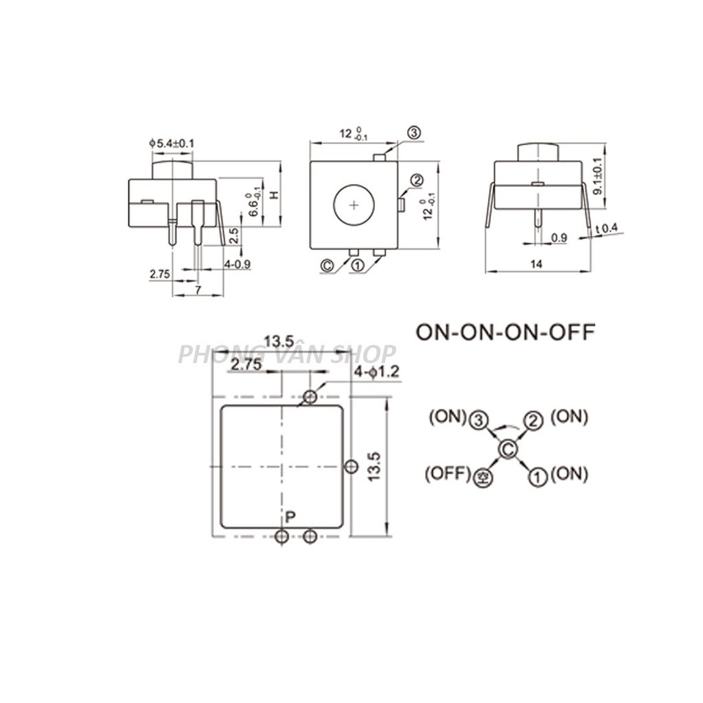 10 Công tắc đèn pin - ON-ON-ON-OFF - 4 chân