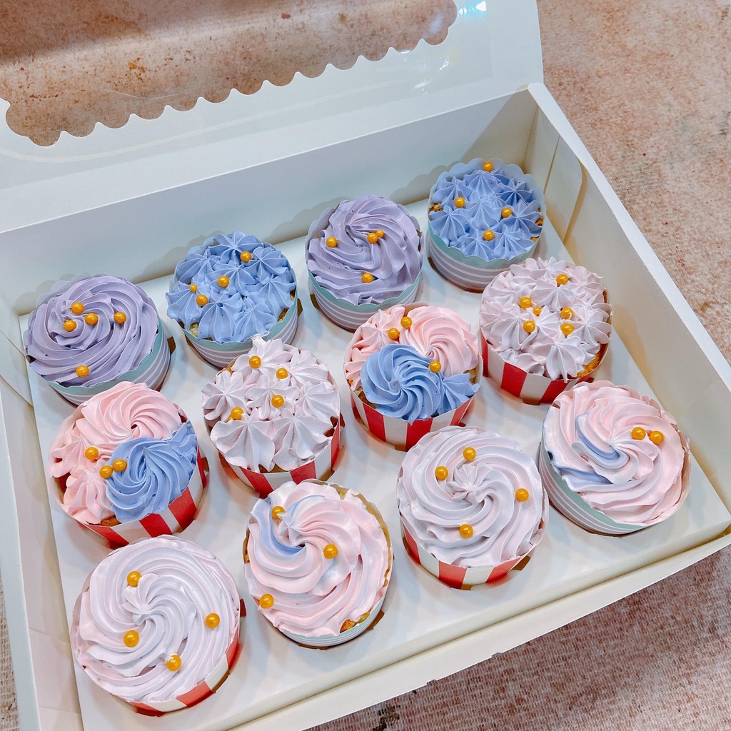 5 Hộp giấy đựng 12 cupcake làm quà tặng Hộp đựng vừa cupcake nhỏ 6cm Hộp đựng vừa cupcake lớn 7cm Hộp có nắp kính trong thấy được bánh xinh xắn bên trong Lốc10 cái Mua sỉ từ 100 cái LH Zalo Thành Phát 0901.476.305 - 090.271.6241