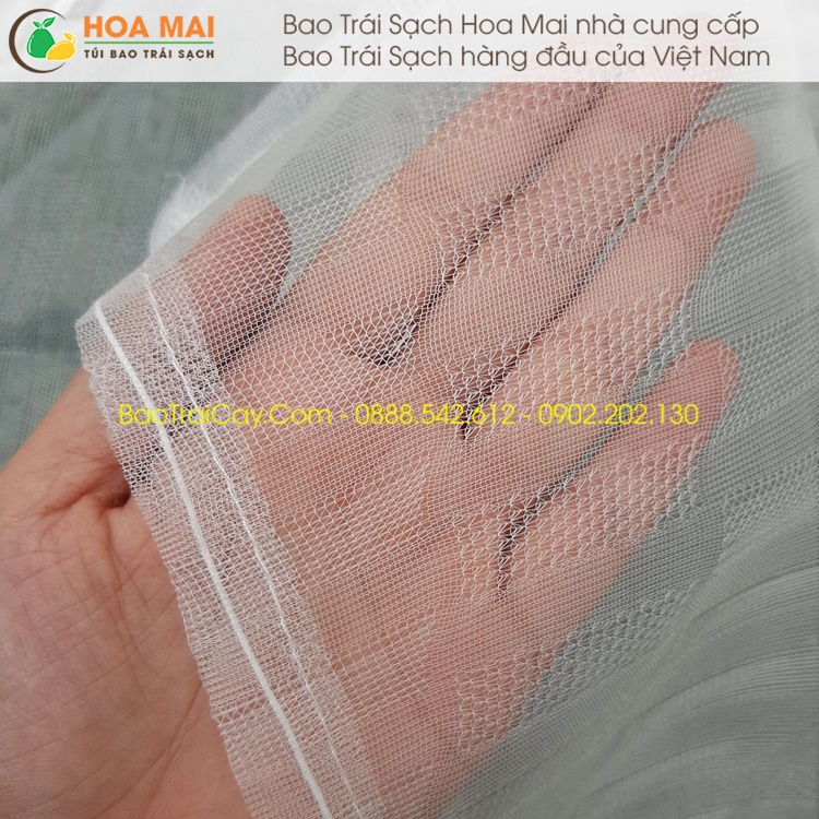 * Túi Bao Trái Sạch Hoa Mai là nhà cung cấp Bao Trái Sạch hàng đầu của Việt Nam với rất nhiều sản phẩm túi bao trái bảo vệ trái, giảm sâu bệnh tăng năng suất cây trồng, với thương hiệu Bao Trái Hoa Mai 15 năm được hàng triệu bà con tin tưởng sử dụng. 👉 Kích thước: 22cm x 28cm 👉 Chất liệu: Lưới mùng caro 👉 Nhà sản xuất: Bao trái sạch Hoa Mai 👉 Công dụng: Chống sâu rầy, ruồi vàng, nhện, chim, sóc, chuột, chống nắng,... 👉 Loại quả: Xoài lớn, bơ sáp, na thái, na đài loan,... 👉 Kiểu bao: Túi vải dây rút 👉 Mua sỉ: Gọi chúng tôi 0902202130 - 0888542612 để tư vấn báo giá cách thức giao nhận hàng CÁCH BAO QUẢ 👉 Bao quả khi quả còn nhỏ, nên dùng các chế phẩm BVTV phun xịt để diệt các loại côn trùng sâu non nhện nấm bệnh bám sẵn trên quả non trước khi bao. 👉 Sau khi xử lý bằng chế phẩm BVTV phải chờ cho chúng bám trên quả khô rồi mới tiến hành bao trái. Việc bao trái phải hoàn thành trong thời gian từ 2 đến 3 ngày, không nên kéo dài quá lâu. 👉 Dùng túi luồng từ dưới lên bao trọn quả và rút dây rút trên bao để siết miệng túi vừa với cuống quả. LỢI ÍCH SỬ DỤNG BAO ĐỂ BAO TRÁI 👉 Phòng ngừa sự phá hại của côn trùng sâu hại (rệp, ruồi, rệp sáp, ong vàng, sâu đục trái, nhện, v.v...) 👉 Phòng ngừa tia cực tím, ánh nắng quá gắt làm trái quả bị nứt và bị rám, quả bị bỏng. 👉 Giảm đáng kể sử dụng các chế phẩm BVTV tạo ra trái cây sạch, an toàn cho người tiêu dùng, an toàn sức khỏe người nhà nông. 👉 Giúp phòng bệnh cho quả như một lớp áo bảo vệ trước sự tấn công của vi khuẩn nắm bệnh. 👉 Bảo vệ lớp phấn tự nhiên trên vỏ trái, giúp da trái tươi ngon, không bị nước mưa rửa trôi hay bị ảnh hưởng bởi môi trường bên ngoài. 👉 Đặc biệt trái cây trở nên đẹp hơn, an toàn hơn, bán được giá cao hơn, và hoàn toàn phù hợp với tiêu chuẩn xuất khẩu của các nước trên thế giới. 👉 Có thể kết hợp với các loại cần để bao quả giúp bao quả trên cao không tốn công phun xịt trên cao. 👉 Phòng ngừa khi gặp sương muối làm cho vỏ trái sần sùi, bị đốm đen. 👉 Giảm thiểu được tác hại của mưa gió gây rụng, ánh nắng làm cháy rám trái 👉 Thân thiện môi trường sau khi hết hạn sử dụng bao sẽ tự phân hủy vào môi trường không tạo rác ở vườn như túi nilon. 👉 Giá thành rẻ.