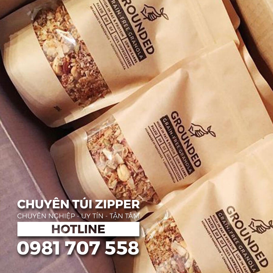 100 Túi Zip Giấy Kraft 18x26 Đáy Oval Có Cửa Sổ - Siêu Dai, Chống Thấm