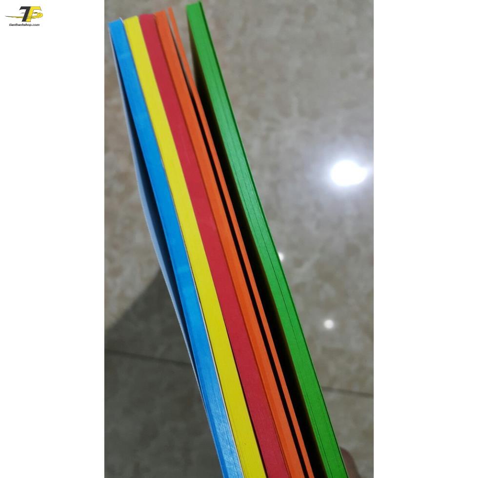 100 tờ Bìa màu đặc biệt Pgrand A4/180gsm (trộn 5 màu) Xấp có 5 màu như hình Dùng đóng sách, chất lượng bề mặt giấy trơn, mịn chống kẹt giấy khi in, photo. Giấy có nhiều màu lựa chọn: Hồng, Vàng, Xanh lá, Xanh dương Đóng gói: 100 tờ/xấp *Khách vui lòng ghi chú màu kh