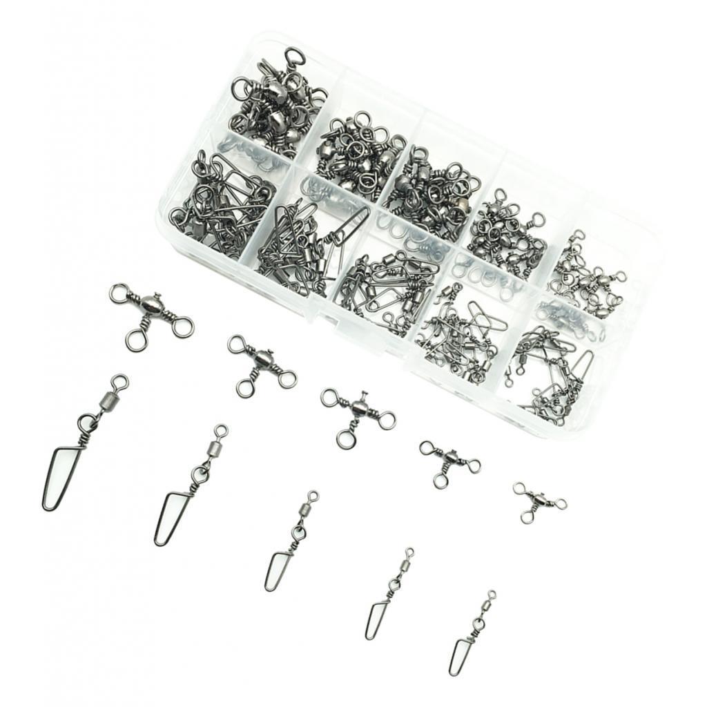 100Pcs Rolling Swivels With Coastlock Snaps & 3 Way Barrel Swivels Connectors